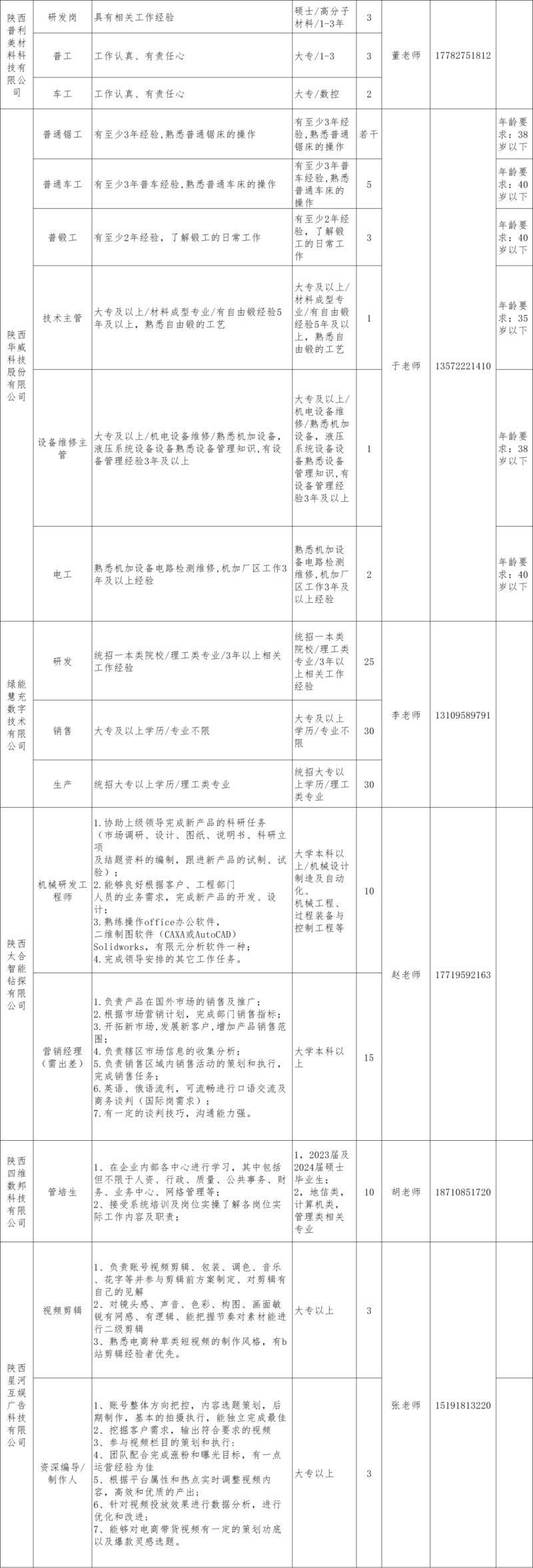 才聚秦创原,就业在西咸,为做好秦创原企业用工保障,搭建人岗相宜的就业平台,我们梳理了入区企业近期招聘信息,有意向的小伙伴可与企业联系投递简历,赶快行动起来吧。
