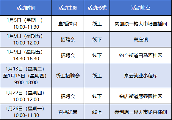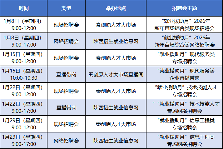 1月份,秦创原人才大市场、就业驿站将举办14场不同主题类型促就业活动,满足各企事业单位和广大求职者双选需求。