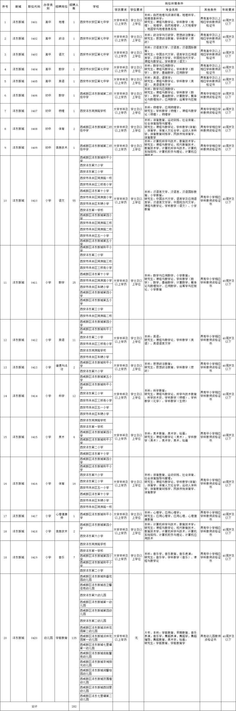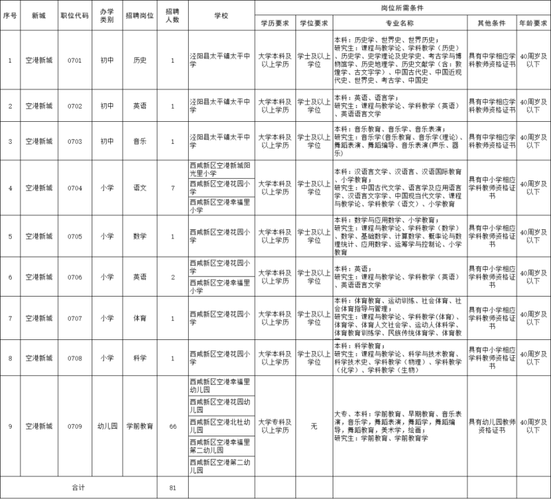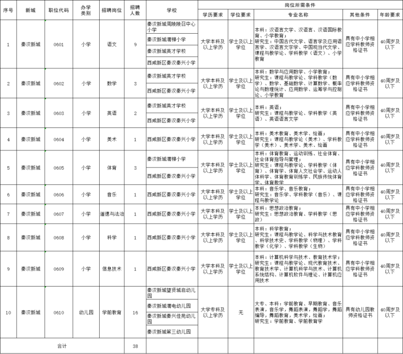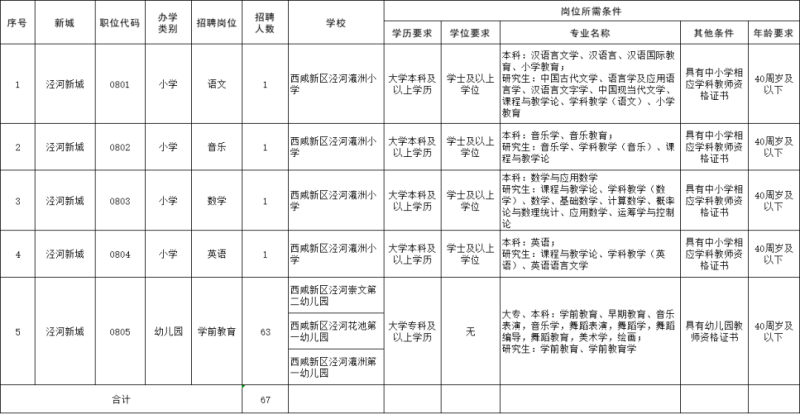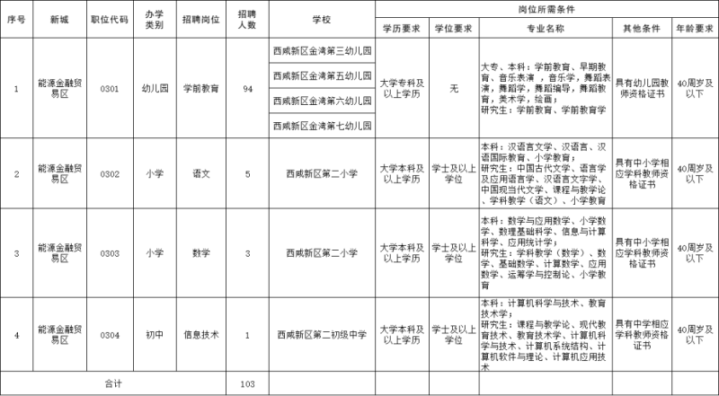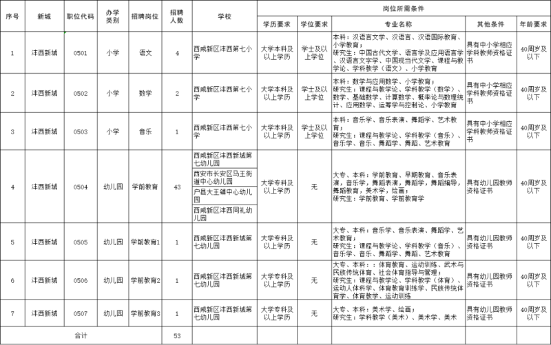 西咸新区2023年教育系统人才招聘岗位需求一览表(教师岗位)