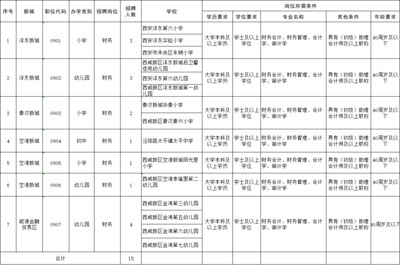 西咸新区2023年教育系统人才招聘岗位需求一览表(财务岗位)