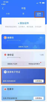 支付宝实名注册后,进入首页点击右上方“卡包”,点击右上方“证件”,找到医保电子凭证,并点击“添加”;