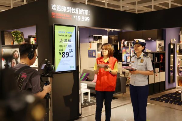 为推动消防宣传教育“进企业”工作深入开展,全面科普消防安全知识,不断提高全民消防安全意识。6月14日,西咸新区消防救援支队沣东大队在宜家家居西安未央店,举办“人人讲安全、个个会应急——消防安全一起同行”主题消防宣传进企业直播活动。