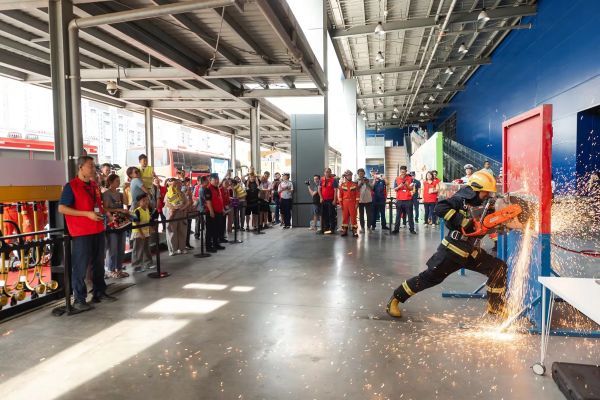 本次活动设置消防隐患模拟场景、消防装备和消防车辆展示、亲子互动挑战游戏等三大模块。在主持人的带领下参观了商场样板间并科普家庭中的隐患问题及消防知识,消防员讲解了消防器材,带领线上线下的群众参观消防车、消防器材等,整场活动在游戏互动中普及消防安全知识。最后,向宜家家居消防志愿者服务队授旗,并授予“消防安全‘进企业’试点单位”。