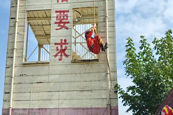 为进一步增强消防救援人员体能素质,提高队伍灭火救援实战能力,进一步推进岗位练兵工作开展,7月23日,西咸新区消防救援支队天台八路消防救援站组织全体人员开展绳索攀爬训练。