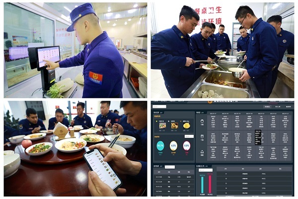 午时(11:00-13:00),关键词:开饭。营养膳食、健康消防,厨房值班员每天使用智能电子称验收食材,智慧消防站平台对每日食材验收、周食谱、月开支进行公示公开,消防员们可对菜品进行点赞评价,消防站也有舌尖上的味道。