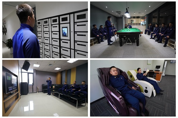 亥时(21:00-23:00,)关键词:娱乐。推行自主式手机管理,消防员在课余时间通过智能手机柜自主存取,一日操课结束大家进行娱乐放松,队站生活有紧张、也有活泼。