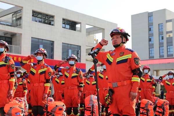 誓师动员 力求打赢。出征仪式上,贺小宇支队长带领全体参战队员重温入队誓词。屈刚政委向抗震救灾党员突击队庄重授旗,要求全体人员务必站在讲政治、顾大局的高度上,以绝对的忠诚、务实的作风、坚强的意志,牢记职责使命,分秒必争、冲锋在前,救民于水火,助民于危难,时刻为民奋战!