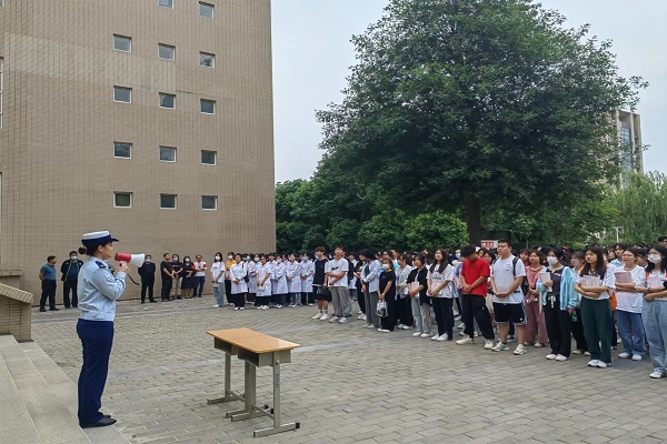 集合后,校领导对此次活动进行了十分中肯的点评,在认可大家积极参与此项活动的同时,对部分不认真对待的同学也提出了严厉的提醒,教导大家要重视安全,为自己负责,为家人负责。随后,沣西大队宣传员也对演练过程提出了专业的点评,宣讲了校园消防安全基本知识,呼吁大家多了解消防,参与消防。