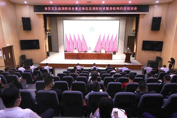8月11日,西咸消防支队组织召开全区支队级消防安全重点单位及消防技术服务机构约谈培训会。新区消防安全重点单位负责人、管理人,消防技术服务机构负责人共70余人参加会议。会议由政治委员屈刚主持。