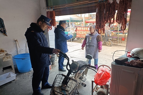 全面排查除隐患。大队针对菜市场人员流动大、火灾负荷大、动态隐患多等实际问题,紧盯电动自行车违规停放充电、电器线路私拉乱接、违规改扩建占用防火间距、违规住人、占用堵塞疏散通道、锁闭安全出口等隐患问题开展细致排查,对检查中发现的隐患逐一登记造册,能当场整改的当场整改,不能当场整改的要求市场管理方制定可行的整改计划并落实防控措施,坚决遏制有影响的火灾事故发生。
