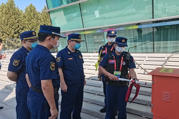 督导组一行主要采取查阅资料、实地查看、提问指导的方式对“十四运”男子U20比赛场地进行全面督导检查,重点查看指挥所运行情况,对场馆内各项消防设施、人员部署情况、重点部位设置、灭火救援力量布置情况、人员装备配备情况进行逐一排查。