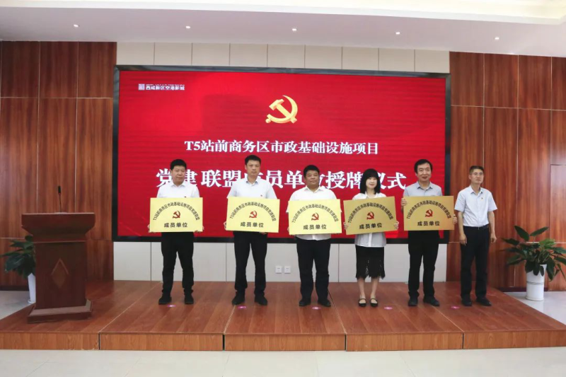 仪式上,T5站前商务区市政项目党建联盟正式揭牌,与会领导为陕西建工集团有限公司、西北综合勘察设计研究院、西安普迈项目管理有限公司等10家党建联盟成员单位授牌,并向党员先锋队授旗。