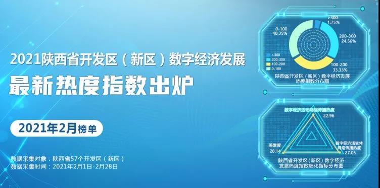 3月29日,陕西省数字经济研究院发布2021年2月份陕西省开发区(新区)数字经济发展热度指数,在全省57个开发区(新区)中西咸新区排名第一。空港新城、泾河新城、沣西新城、秦汉新城和沣东新城均进入前十一。
