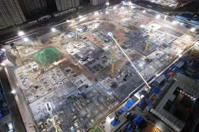 项目位于西咸新区泾河新城秦创原医疗健康科技产业园一期,产业园占地近16万平方米,总建筑面积30万平方米,目前,东、西区均已全面进行主体施工,项目整体主体结构完成80%。东区主体结构完成90%,其中10#、12#、13#楼已封顶,11#楼施工至五层。西区主体结构完成70%,其中医技楼,门诊楼,3#住院楼局部已施下至四层,预计今年底全部封顶,2023年底竣工。