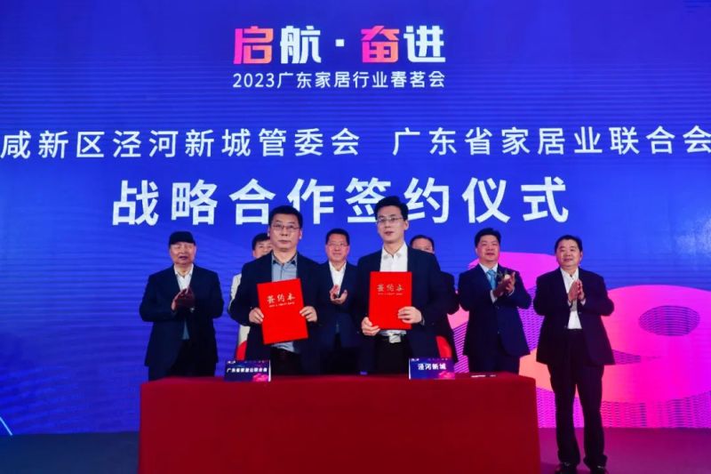 3月27 日,第十九届中国家居产业高质量发展峰会暨2023 广东家居行业春茗会在广州举行。会上,陕西省西咸新区泾河新城与广东省家居业联合会签署战略合作协议。依照协议,广东省家居业联合会的“国货行天下”总部基地将落户泾河新城原点新城。