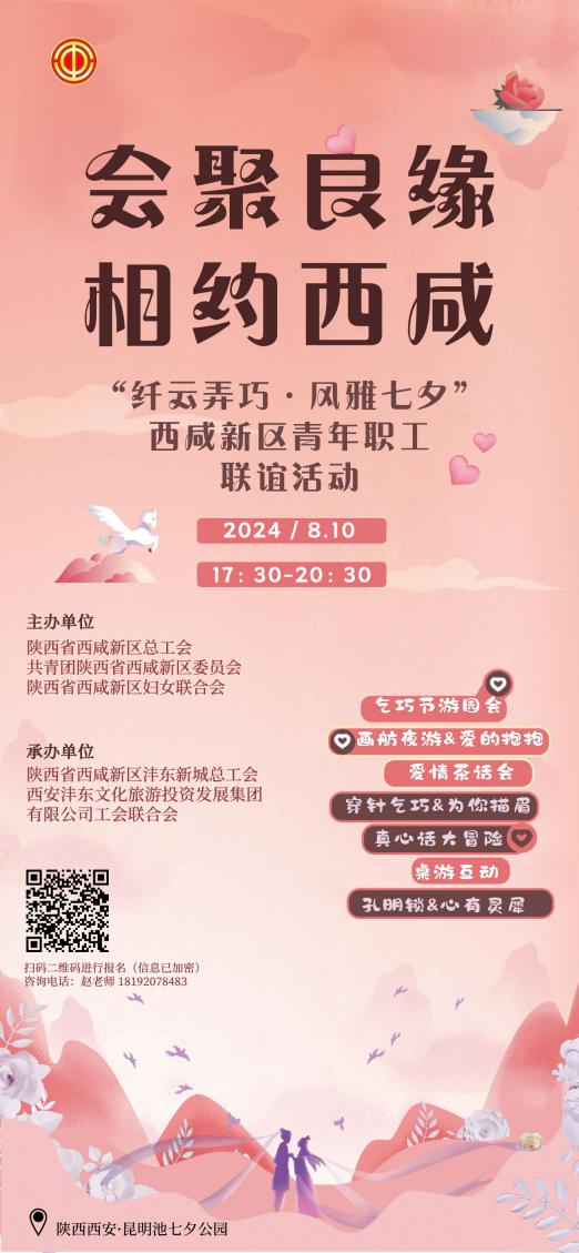 8月10日,西咸新区青年职工联谊活动将在昆明池·七夕公园开启浪漫之约。
