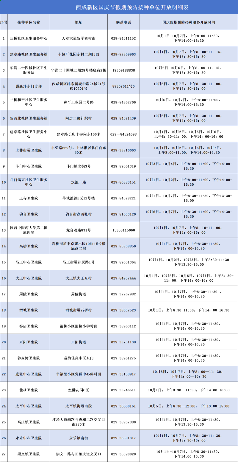 温馨提示:节假日期间,有接种需求的市民朋友,可通过“健康西咸”公众号进行线上预约,也可以通过拨打咨询服务电话,或直接前往现场进行预约接种。