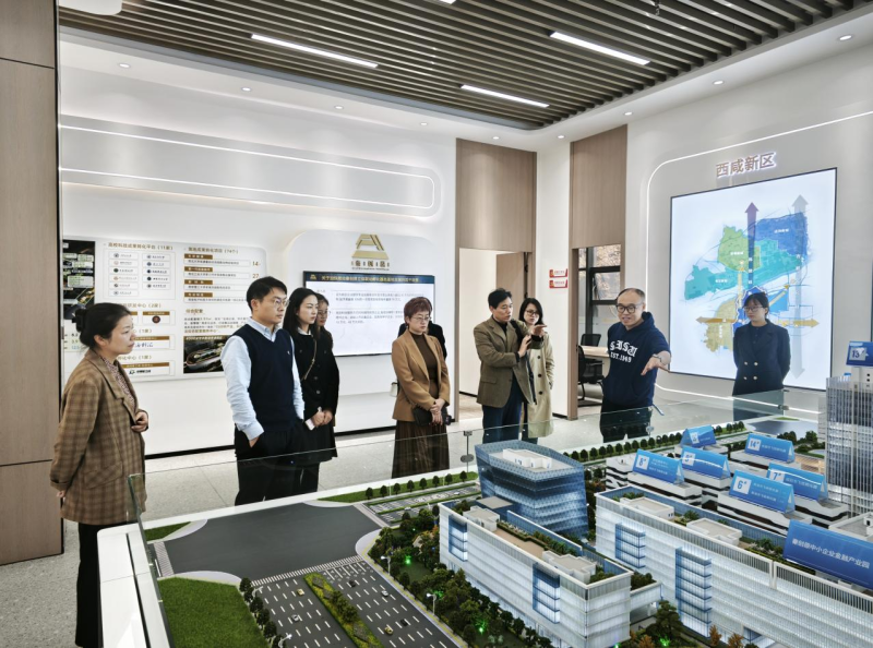在展厅,工作人员详细讲解了陕西秦创原总窗口发展历史和园区实践。“秦创原创新驱动平台,是陕西最大的孵化器,是全省创新驱动发展总平台,总窗口设在西咸新区。”“秦创原立体联动孵化器总基地探索创新飞地、离岸孵化等模式,使创新成果转化惠及更多市县区、高校、科研院所和市场主体,推动各类科技孵化资源立体联动,为科创企业自我转型升级赋能。”上外校友们一边听,一边用手机拍照记录,对高质量发展成效点赞。