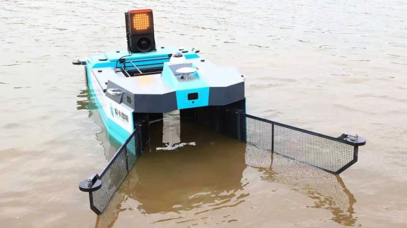 “这款环保无人清洁船,集成了5G 物联网、毫米波雷达与视觉识别融合技术,可实现水面垃圾自主识别、沿边精准清扫、智能路径规划等全流程无人化作业,无论是漂浮杂物、水生植物还是岸线边缘垃圾,都能高效归集清理,还可以搭载模块扩展功能实现水质监测和巡检喊话。”负责操作设备的工作人员介绍,清洁船运行速度在1.2米每秒到2米每秒之间,根据水面情况可以灵活调节,实时扫描水域信息建立清扫地图后,就能远程设定最佳作业路线提高避障效果。