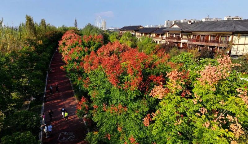 金秋时节,陕西西咸新区沣河两岸秋意渐浓。暖阳下,斑斓的树木,碧蓝的晴空,巍峨的秦岭,共同绘就出一幅绚烂秋景。