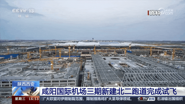 5月15日,CCTV-1综合频道《新闻联播》报道《西安咸阳国际机场三期扩建工程新建北二跑道试飞成功》。