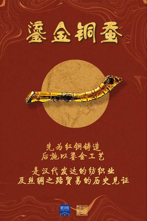 40年前,鎏金铜蚕在陕西石泉被发现。据《石泉县志》记载,此地古代养蚕业非常兴盛。到了汉代养蚕缫丝业达到高峰。张骞两次出使西域,使得西汉丝织品不仅畅销国内,而且途经西亚行销中亚和欧洲,这条横贯东西、连接欧亚的商路也以“丝绸之路”驰名于世界。