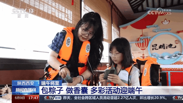 前来体验的游客说:“来到昆明池景区,体验了泛舟游湖,因为是中国的传统节日,我们也体验了包粽子、做香囊的活动,感觉很有意义。”