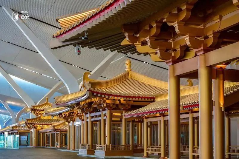 走进T5航站楼,深厚的文化气息扑面而来,映入眼帘的是古都长安的城市规划格局及唐代大明宫含元殿的建筑风格建筑,古典韵味和现代气息交相呼应。这里就是T5航站楼精心打造出的国内机场最大的古建筑商业群,继承古长安城九宫格棋盘式布局,以现代工艺复刻汉唐盛世丝路长安的传统美学。