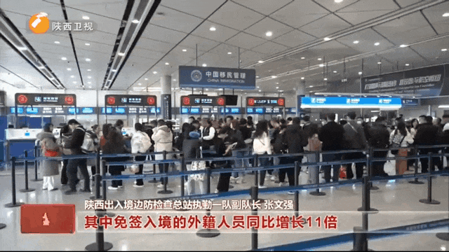 陕西出入境边防总站执勤一队副队长张文强介绍,“今年春节假期以来,西安机场口岸入境外国人同比增长97%。其中,免签入境的外籍人员同比增长11倍,与此同时,西安机场口岸作为中亚国家入境中国的重要口岸和亚冬会备降机场之一,我们科学优化勤务组织,在执行现场开设边检亚冬会专用通道,为涉赛人员提供便捷高效的通关体验。”