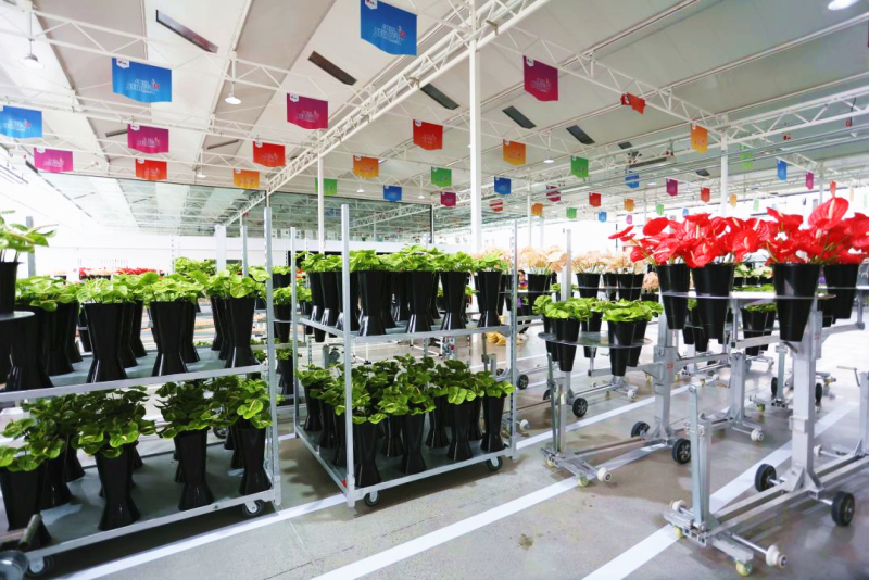走进位于泾河新城的基泰园艺特色设施农业产业园,随着智能玻璃温室内棚顶遮阳帘缓缓收起,无土栽培的各类蔬菜和花卉在立体架上有序生长。物联网系统实时监测着温度、湿度,精准调控的光照与自动灌溉的水流让农作物进入最佳生长状态。作为陕西省最大规模的鲜切花生产基地,这里的鲜切花销往全国各地以及海外市场。