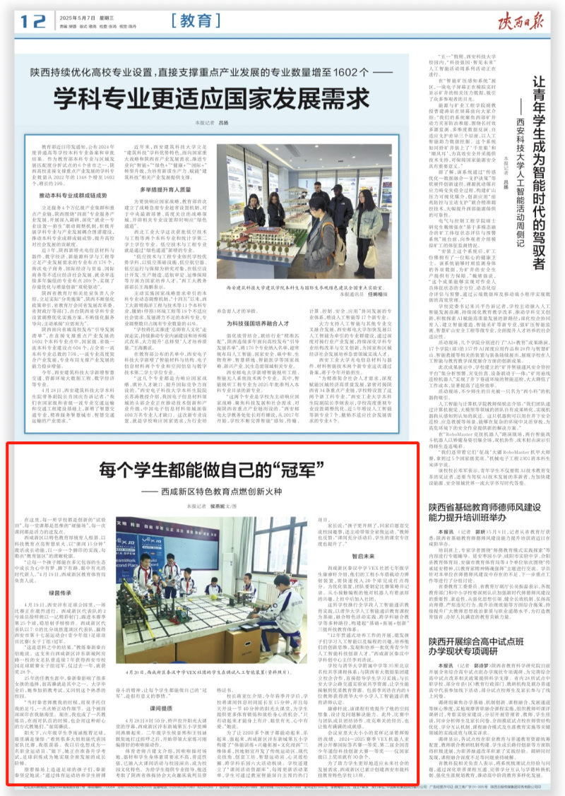 西咸新区以特色教育厚植育人根基、以科技教育点亮智慧星火、以“课间15分钟”激活成长动能,以一步一个脚印的实践,勾勒出“教育强区”的清晰轮廓。