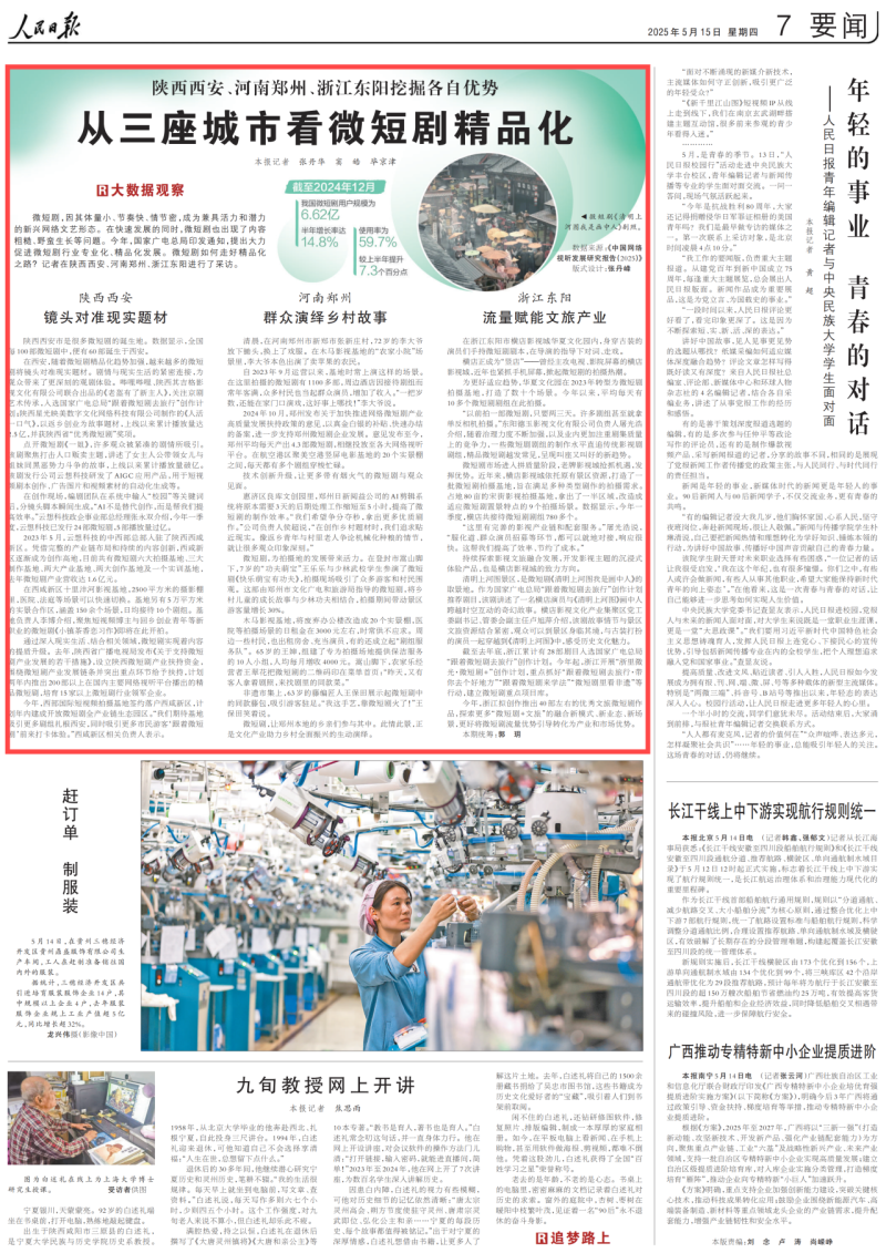 微短剧,因其体量小、节奏快、情节密,成为兼具活力和潜力的新兴网络文艺形态。在快速发展的同时,微短剧也出现了内容粗糙、野蛮生长等问题。今年,国家广电总局印发通知,提出大力促进微短剧行业专业化、精品化发展。微短剧如何走好精品化之路?记者在陕西西安、河南郑州、浙江东阳进行了采访。