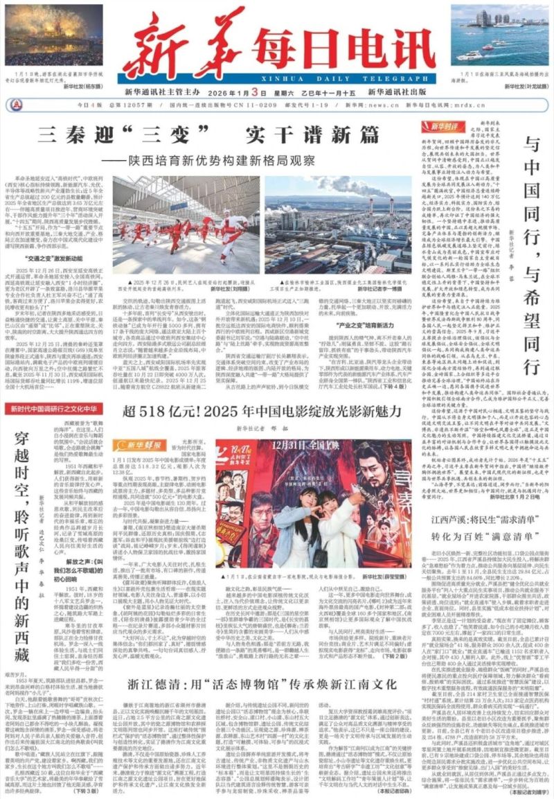 1月3日,《新华每日电讯》头版头条刊发《三秦迎“三变” 实干谱新篇——陕西培育新优势构建新格局观察》,其中报道西咸新区以精准科创服务培育产业活力成为陕西构建内陆开放新格局,发展新质生产力的重要支撑,全文如下。