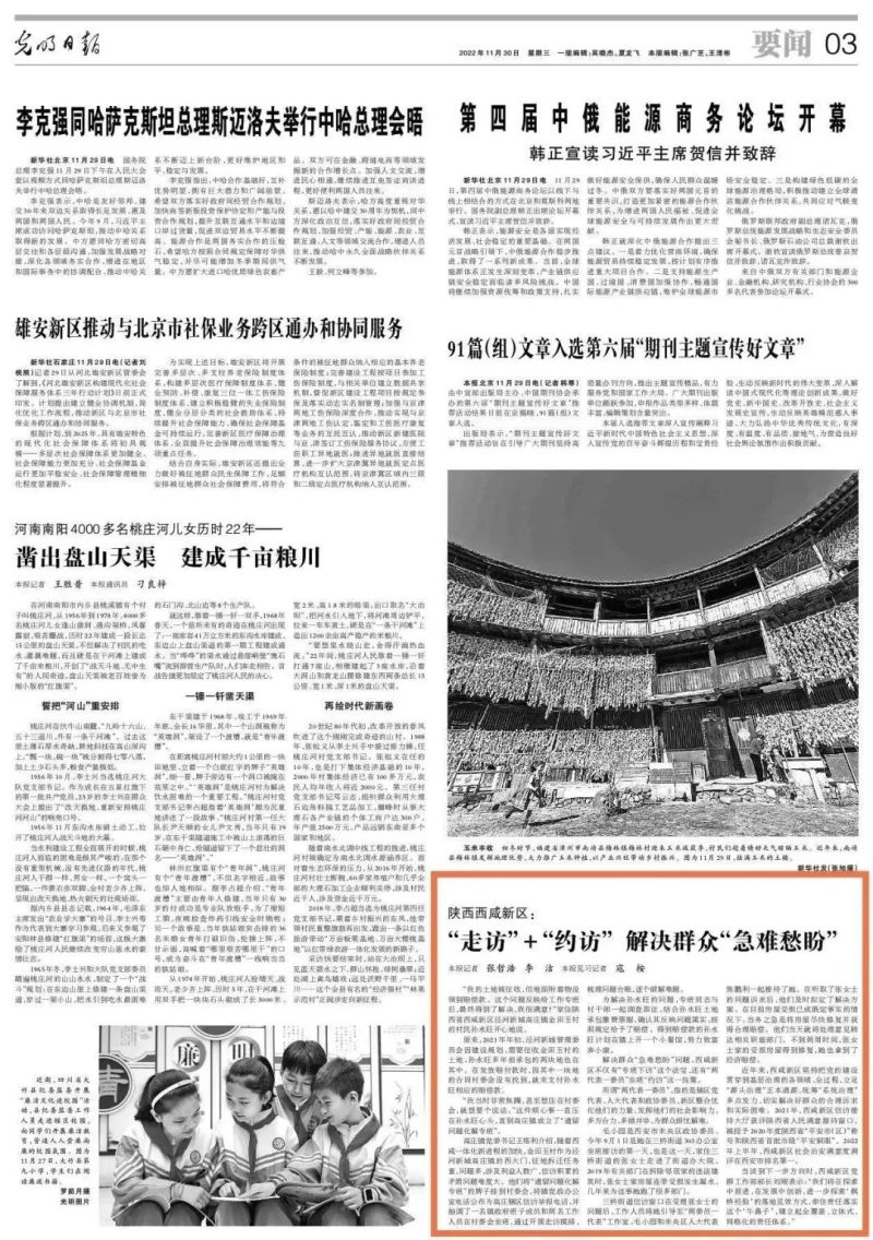 今天,光明日报刊发《陕西西咸新区:“走访”+“约访” 解决群众“急难愁盼”》聚焦西咸新区坚持以人民为中心的发展思想,多措并举为群众排忧解难。