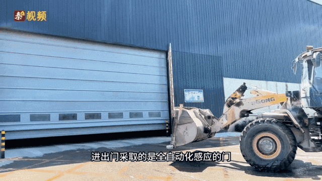正如姚晓东所言,记者在厂区内转了一圈,只看见一辆辆装成品混凝土的车辆,却始终难觅混凝土生产线的影子。直到一辆突然出现的装载机,触发自动识别系统“打开”一个“大房子”的大门,才看到了成堆的砂石料。只见房顶密密麻麻安置的喷雾装置,正在循环工作降尘,此处就是存储砂石料的料仓。