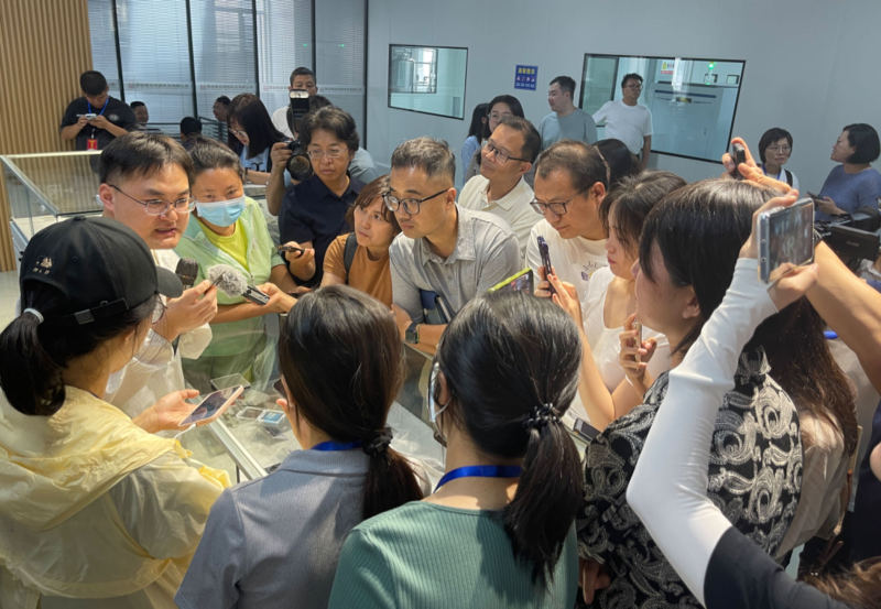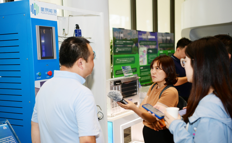 这里还有国内唯一一家集研发、制造、销售于一体的CdZnTe探测器和相关产品生产商陕西迪泰克新材料有限公司。搭建起涵盖储放氢催化剂、有机氢载体、储放氢装置等领域全链条研发平台的新区新能源产业代表企业氢易能源科技有限公司。联合西安交通大学陶文铨院士团队共同研发出陕西首台套氢燃料电池堆产品的陕西旭氢时代科技有限公司,以及国家级高新技术企业陕西引汉济渭科技发展有限公司等新区代表性企业,纷纷向媒体团介绍了各自的展品,对记者们提出的问题进行了详细解答。