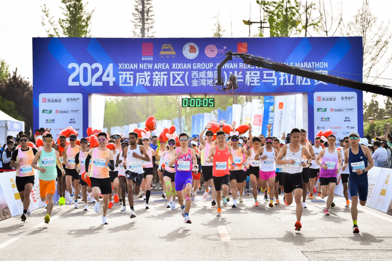 4月21日上午,2024西咸新区(西咸集团金湾地产)半程马拉松赛在沣东新城昆明池•七夕公园正式开赛,万人齐聚昆明池畔,现场氛围热情高涨。
