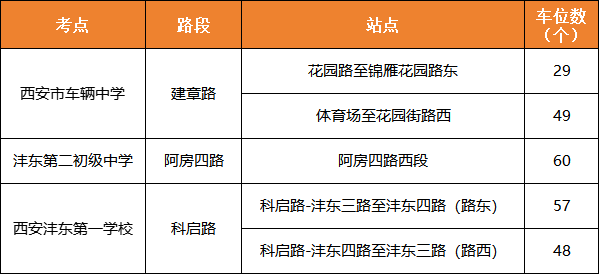 6月7日至9日期间,西咸新区停车管理公司在新区3个考点周围,也开放免费车位243个,详情如下: