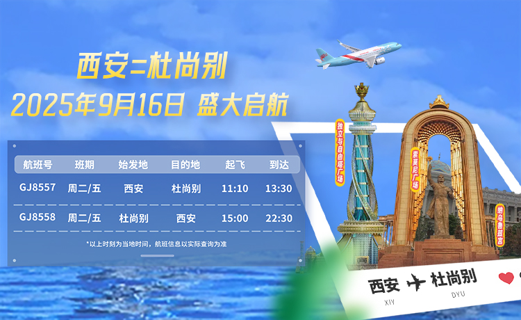 西安-杜尚别航线,往返航班号GJ8557/GJ8558,每周二、五执飞。