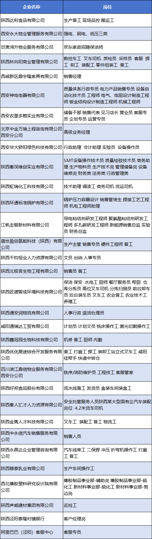 “西咸新区金秋招聘季”综合类专场招聘会岗位及企业名单