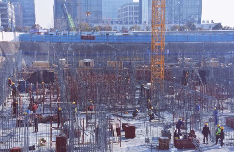 钢筋绑扎、顶模板支设、混凝土浇筑……目前北区已完成深基坑工程基础大底板浇筑,进入地下二层施工阶段。