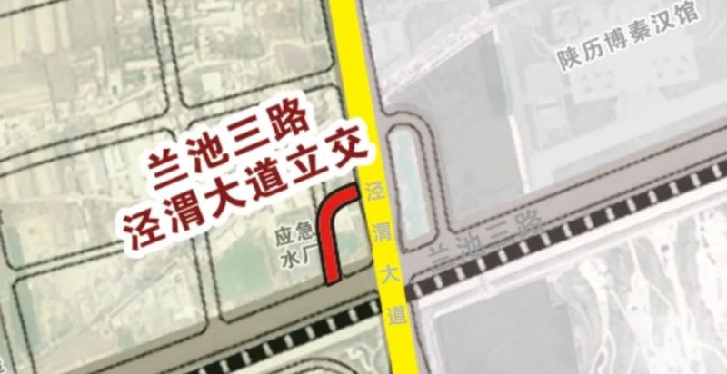 此外,位于兰池三路与泾渭大道立交工程交叉区东北象限的东侧匝道目前已建成通车,解决了泾渭大道南向北上兰池三路,以及兰池三路西向北、东向北上泾渭大道的交通问题。