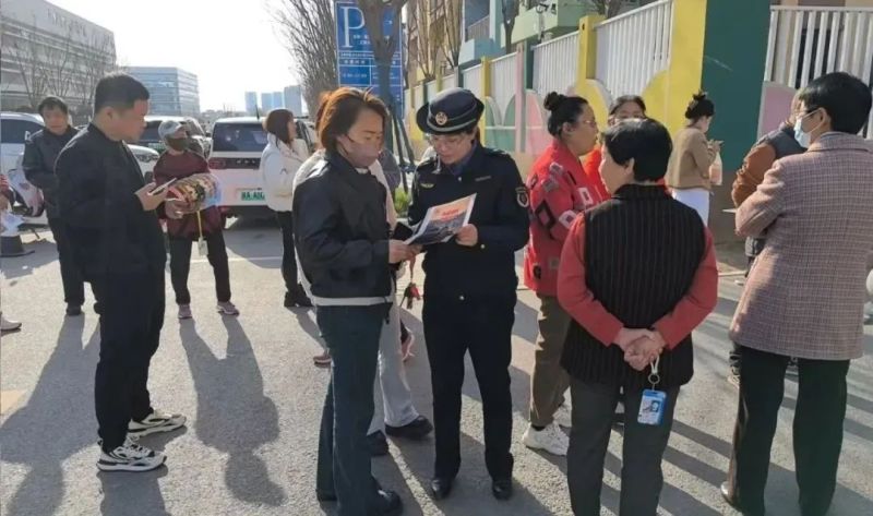 “陌生链接不点击,个人信息要保密”“电动车充电莫‘飞线’,消防隐患需警惕”……护学岗执勤间隙,执法队员们手持彩色宣传页,利用家长等候时间开展“微课堂”,用通俗易懂的语言讲解反诈防骗、消防安全等知识。