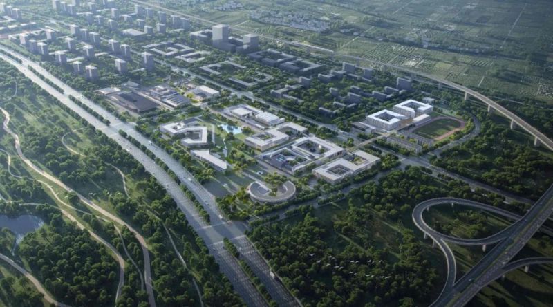 西安戏剧学院位于西安市西咸新区秦汉新城渭北片区兰池二路,南临兰池大道,西至秦宫六路,东至秦宫八路,北至兰启路,中部有兰池二路、秦宫七路和秦涧路将用地划分为3部分。