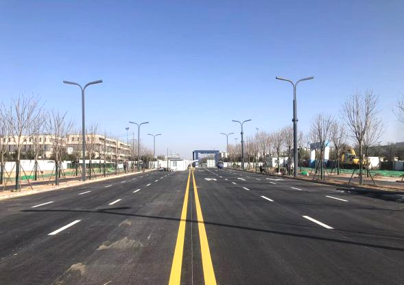 截至目前,项目已完成雨污水管道敷设、电力沟施工、沥青面层铺设及路灯、标识标牌安装,具备通车条件。
