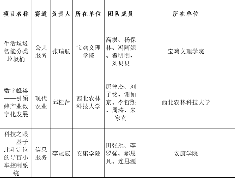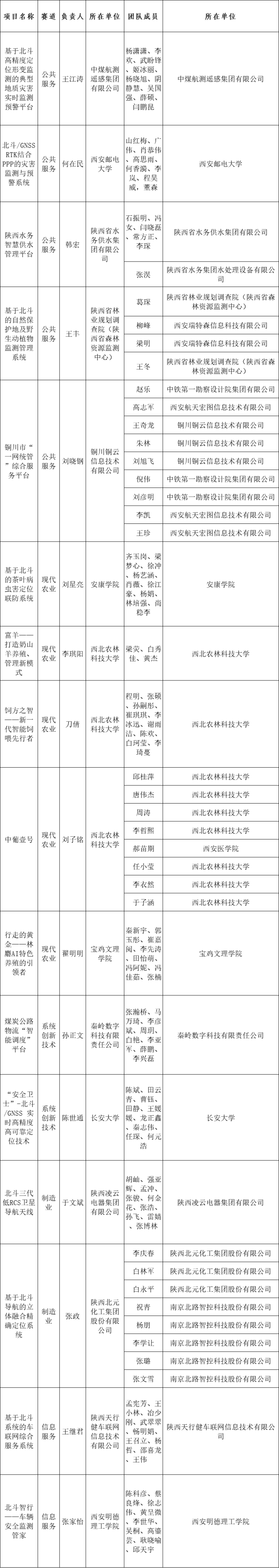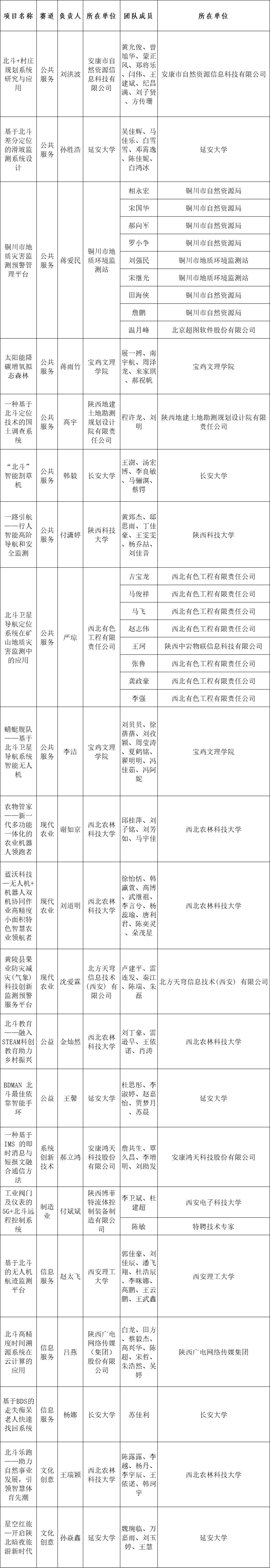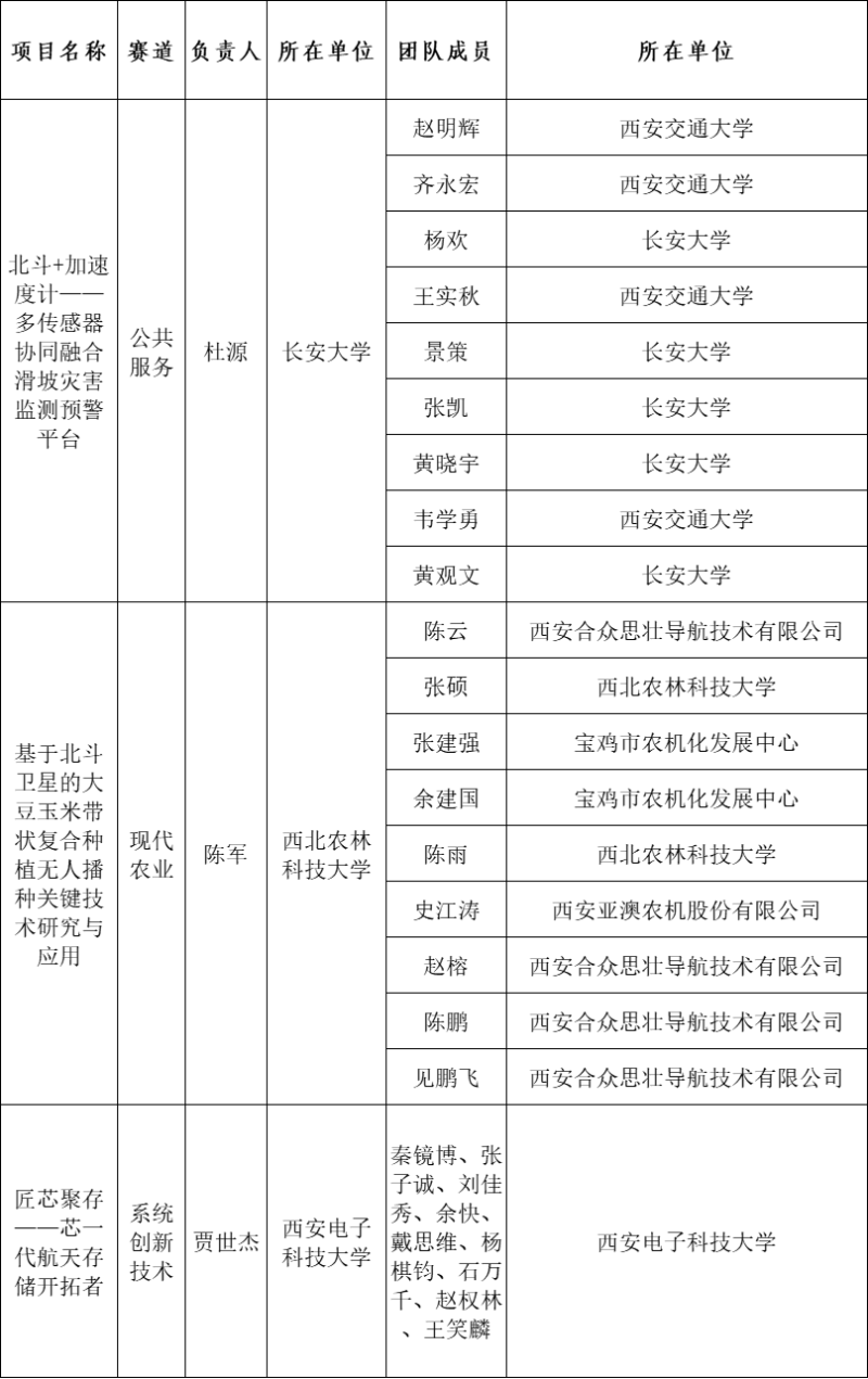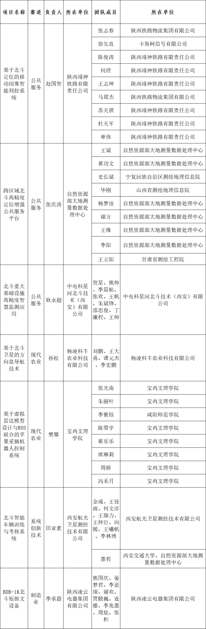 2023年陕西省北斗创新创业大赛获奖项目拟入选名单
