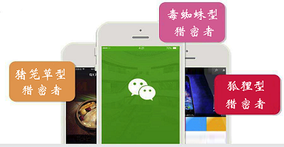 微信作为一款用户规模庞大的移动互联网应用,潜伏着大量“猎密者”,主要包括三种: