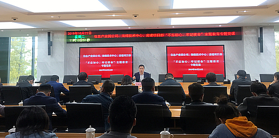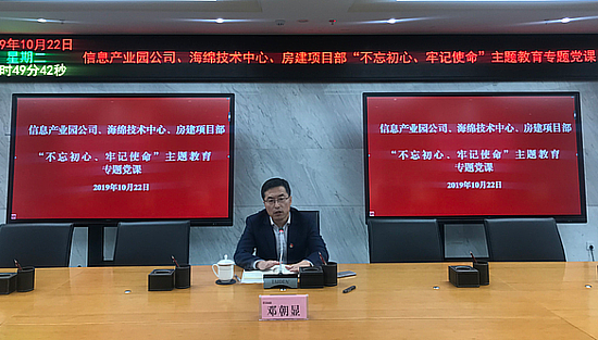 10月22日,信息产业园公司联合海绵技术中心、房建项目部开展10月份主题党日活动。集团公司党委委员、副总经理,信息产业园公司党支部书记邓朝显围绕“不忘初心、牢记使命”主题,为大家讲授党课。