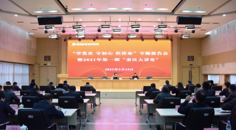 3月19日,秦汉新城举办“学党史 守初心 担使命”专题报告会暨2021年第一期“秦汉大讲堂”,邀请西安市委党校党史党建教研部主任、西安市委宣讲团成员刘晓芬进行了题为《从党的发展历程看党的初心与使命》专题讲座,从“开天辟地的大事变——中国共产党的诞生”等六个方面,深入浅出地为新城广大干部职工讲解了中国共产党的发展历程和苦难辉煌。