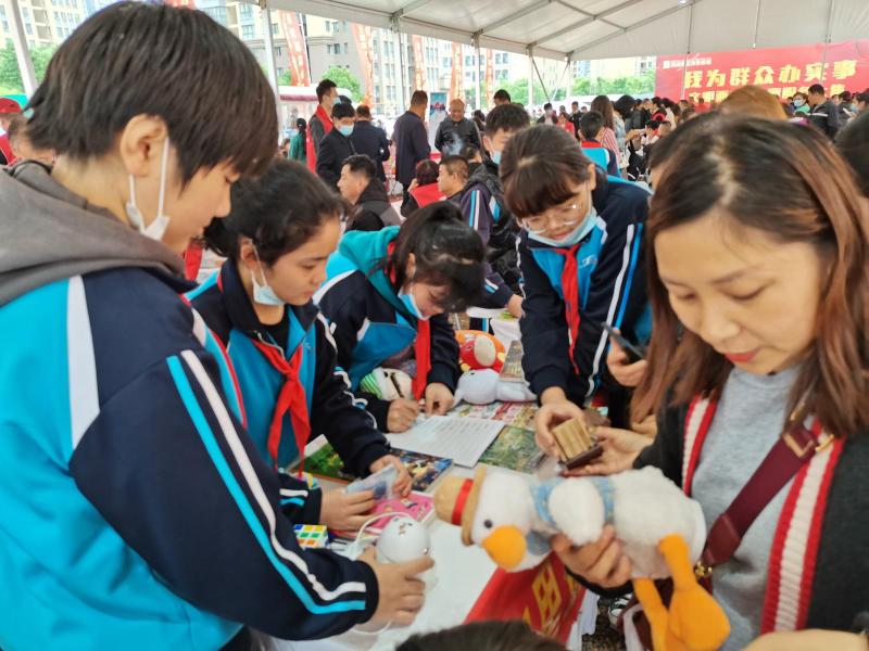 本次除了常态化的志愿服务大集外,还有一个热闹的“邻里益集”。来自沣东一校的30名学生、家长和19个村(社区)将家中闲置的物品拿出来在现场以物换物或者赠送、出售。大英儿童百科全书、扫地机器人、足球、保温杯等品质较好的二手物品吸引了众多群众前来挑选。通过这种方式,不仅循环利用了家中闲置物品,还为有需要的邻居提供了帮助,营造了和睦友好的邻里关系,建设绿色、环保、节约的和谐社会。